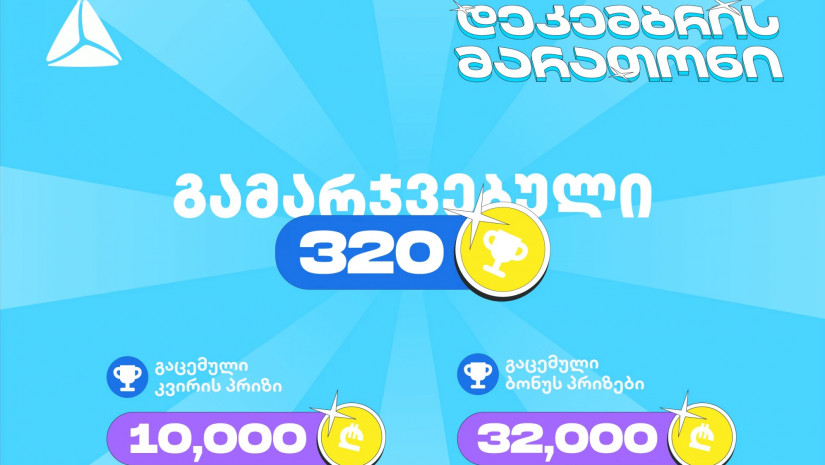 მარათონის პირველი სათამაშო კვირის შემდეგ, 320 გამარჯვებულზე ბონუს პრიზებად უკვე 32 000 ლარი გაიცა. შეგახსენებ, რომ თუ მილიონ მონეტას დააგროვებ, შენც გახდები 100 ლარის მფლობელი.