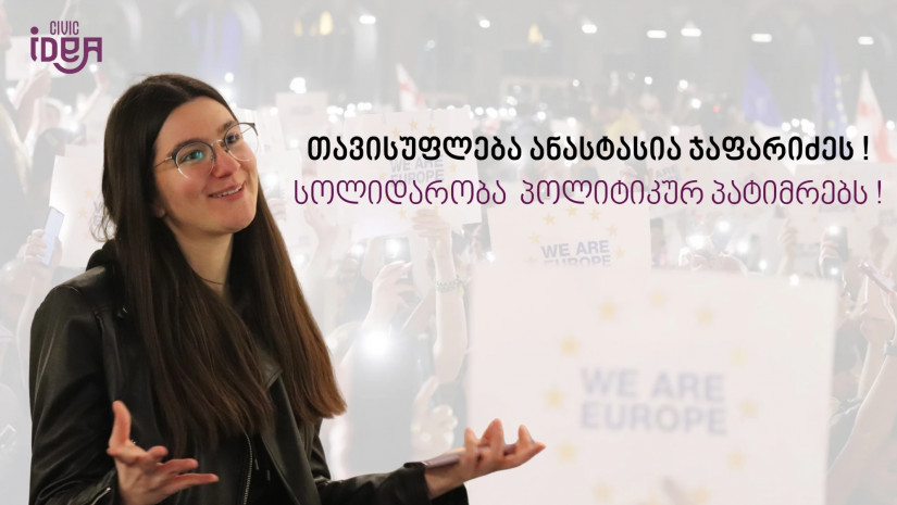 მოვითხოვთ ანასტასია ჯაფარიძის დაუყოვნებლივ გათავისუფლებას. ანასტასია ღირსეული წარმომადგენელია იმ თაობისა, რომელსაც ძალიან კარგად ესმის როგორც თავისუფლების, ისე დემოკრატიული ღირებულებების მნიშვნელობა, - ამის შესახებ „სამოქალაქო იდეას“ განცხადებაშია აღნიშნული.